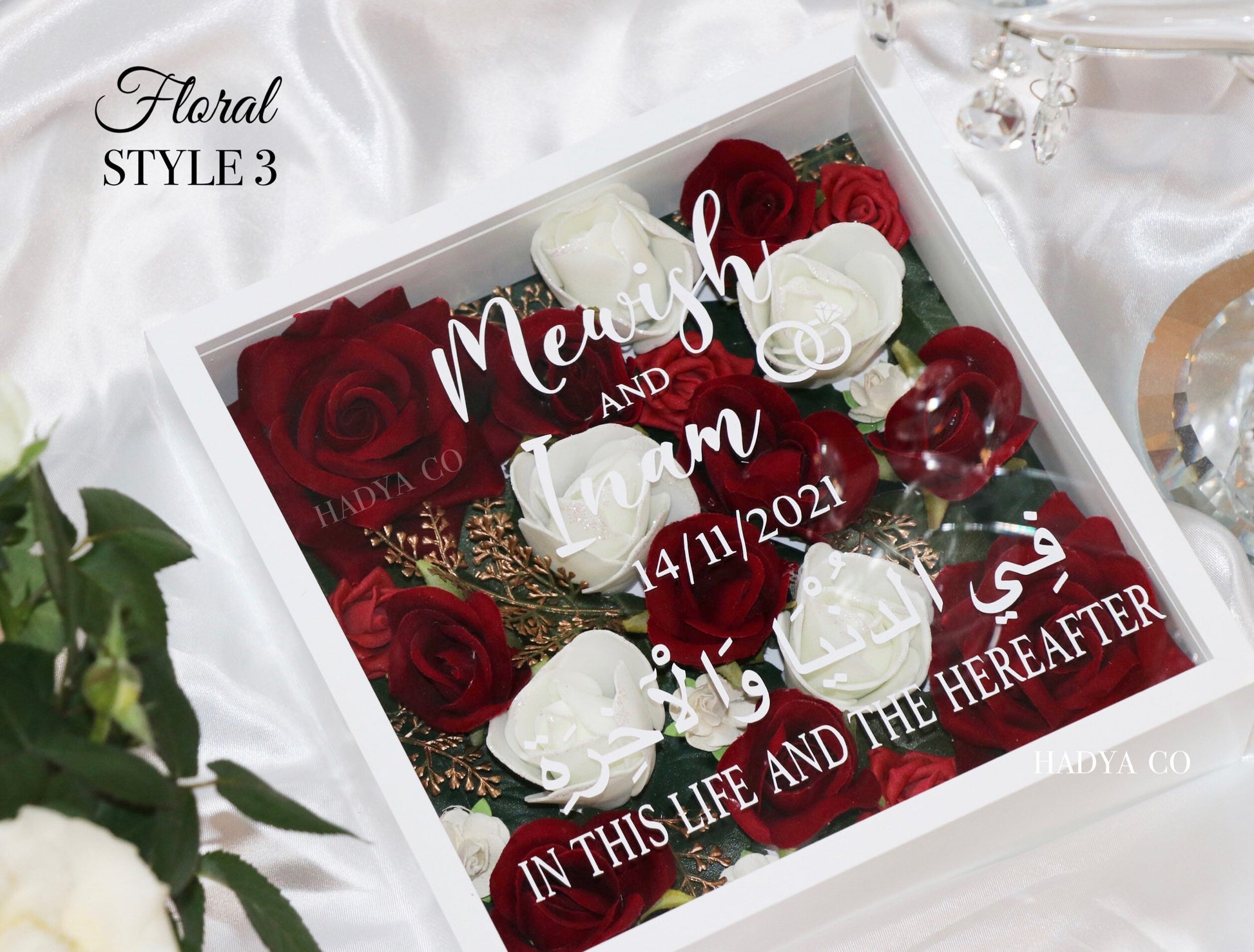 Luxury Personalised Floral Frame - Perfect for ~ Nikkah, Islamic Gifts, Wedding, Birthday, Hajj, Graduation, Mothers Day | Flower Shadow Box